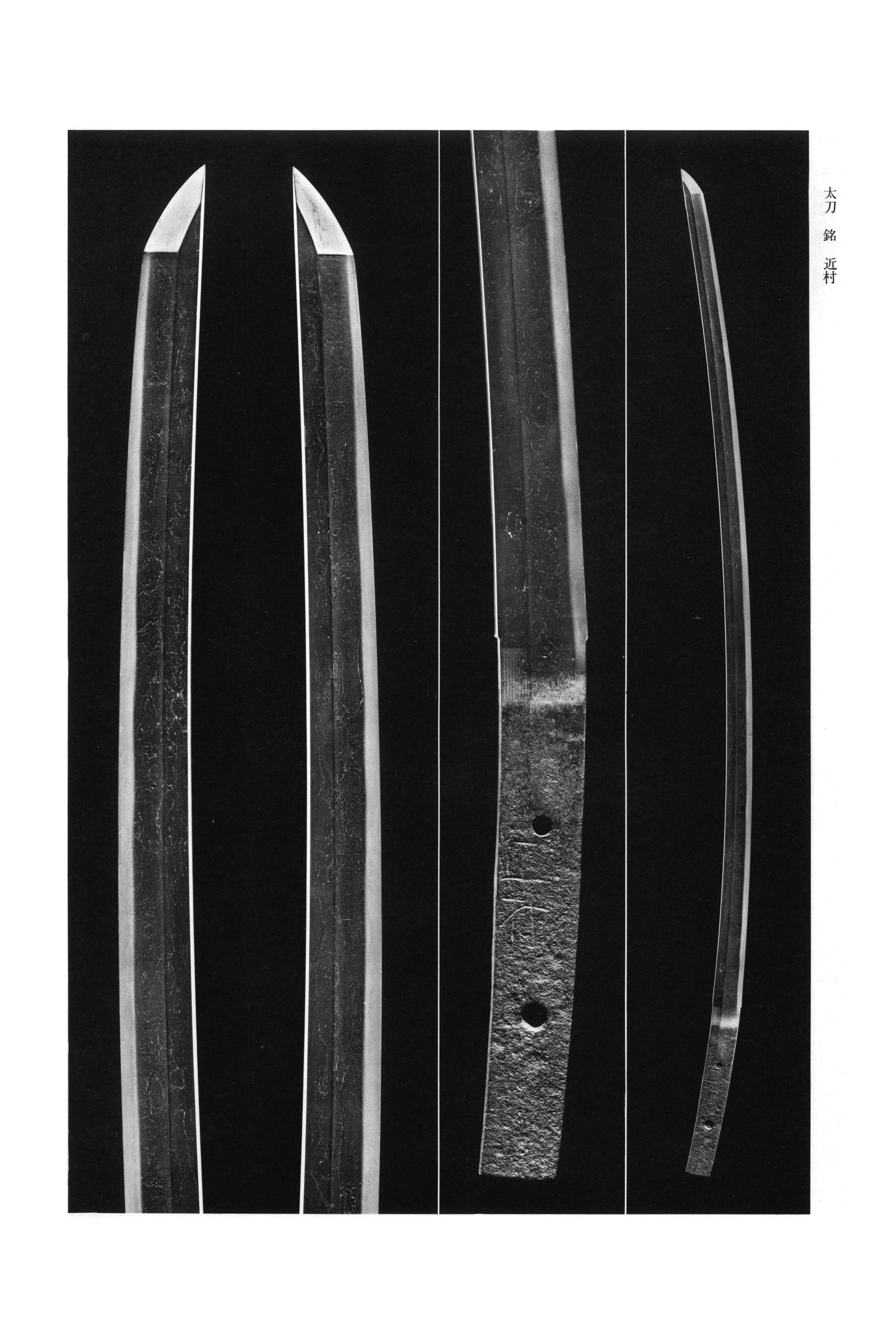 Chikamura's characteristic work displays the archaic and elegant associated with the lineage: slender, with high , , and . The is mixed with and , with abundant well applied and appearing. The ranges from mixed with small to , with and entering, adhering well, and and appearing — hallmarks of accomplished workmanship. The typically runs straight, turning in , with a tendency toward . Two distinct types of signature survive: one in large, boldly cut characters and another in smaller script, possibly reflecting different periods within the smith's career.