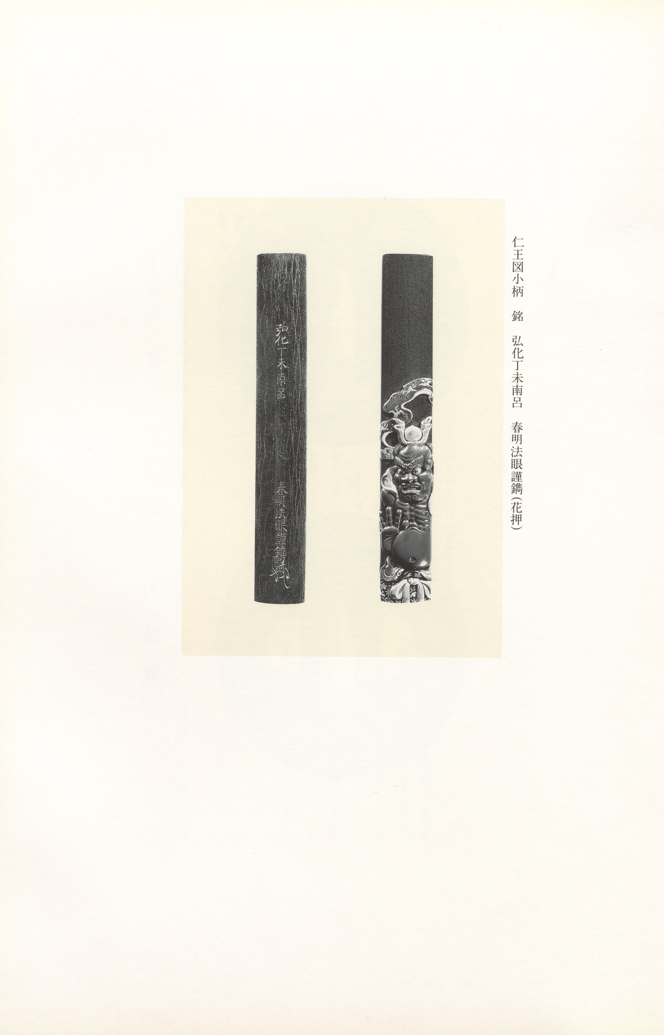 Kono Shunmei (1787--1857) was born in and entered the studio of Yanagawa Naoharu of the Yokoya lineage at the age of fifteen, in Kyowa 2 (1802). He initially signed his work Haruto, but during the Bunka era changed his art name to Shunmei. In the early Bunsei era he was appointed Hokyo, and before long advanced to the rank of Hogen. Active in the period as Goto Ichijo, Shunmei is regarded as one of the representative metalworkers of his day. His sphere of activity, however, was not confined to the capital: around the Bunsei era he traveled extensively through the Tohoku region and northern Kanto, producing works on commission for wealthy patrons and prosperous farming families, and leaving behind several notable masterpieces in Sendai and at Kamegasaki in Tou. In his later years, during the Ka'ei and Ansei eras, he journeyed to the Echigo region, where he ultimately died. Works from these itinerant periods bear supplementary inscriptions recording their place of execution, and he also adopted the go Jippo-o ("Old Man of Ten Directions"), a name reflective of his wide-ranging travels.