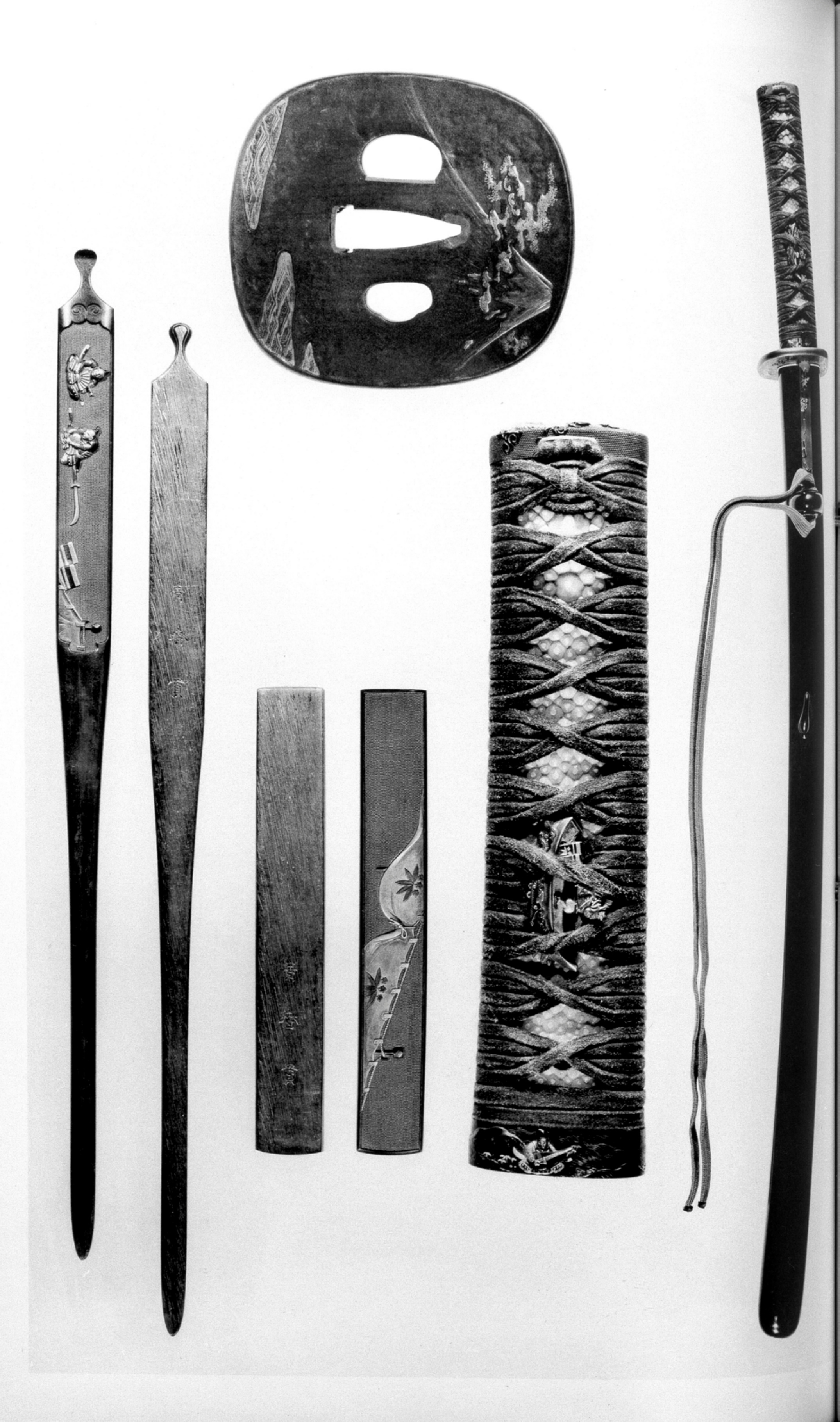 Aoki Shunkan, personal name Jinkichi, was born in Kyoto in Bunka 2 (1805). He first studied metalworking under his father Jinsuke; later traditions variously state that he apprenticed to Kawasaki Kagaharu of the Otsuki lineage, or that he received instruction from Uesugi Kazunuki and from Goto Ichijo, "though none of these accounts is definitively established." He was celebrated in his day as a specialist urashi (back-engraver) for and , earning renown under the name "Yamajin-urashi." He signed his works in a distinctive reisho (clerical-script) hand, using such signatures as Shunkan, Aoshunkan, and Seiryuken Shunkan. Among his pupils was Masanuki. He died at fifty-four in Ansei 5 (1858).