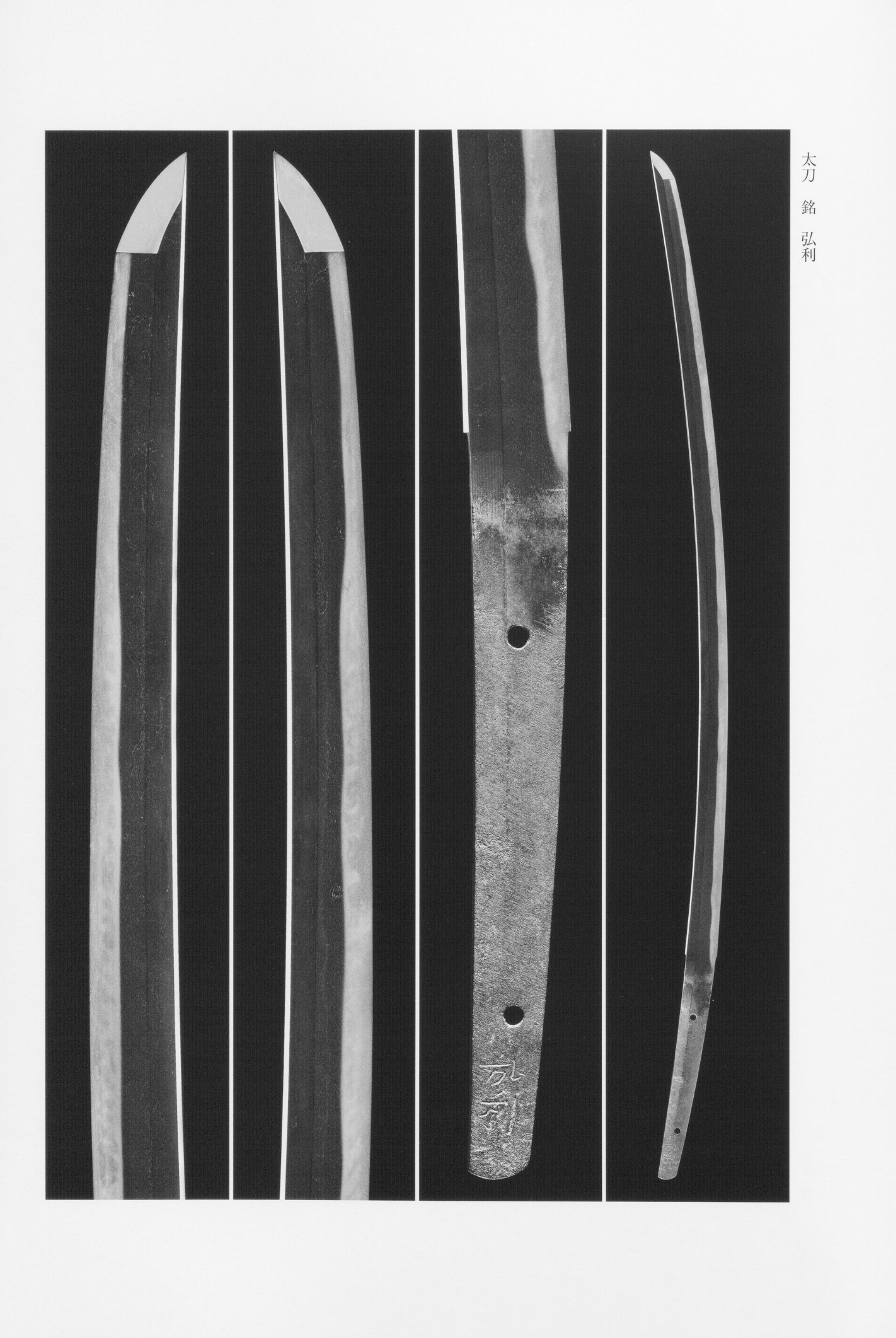Extant signed works by Hirotoshi are extremely few, and those that survive — though typically — preserve the dignified form of the mid- period, retaining high with remaining . The two-character signature is characteristically cut with a thick chisel. These blades serve as important reference material for the study of the Fukuoka school, and their documentary value is particularly high in illuminating questions of lineage and generational transmission within this celebrated group of smiths.
