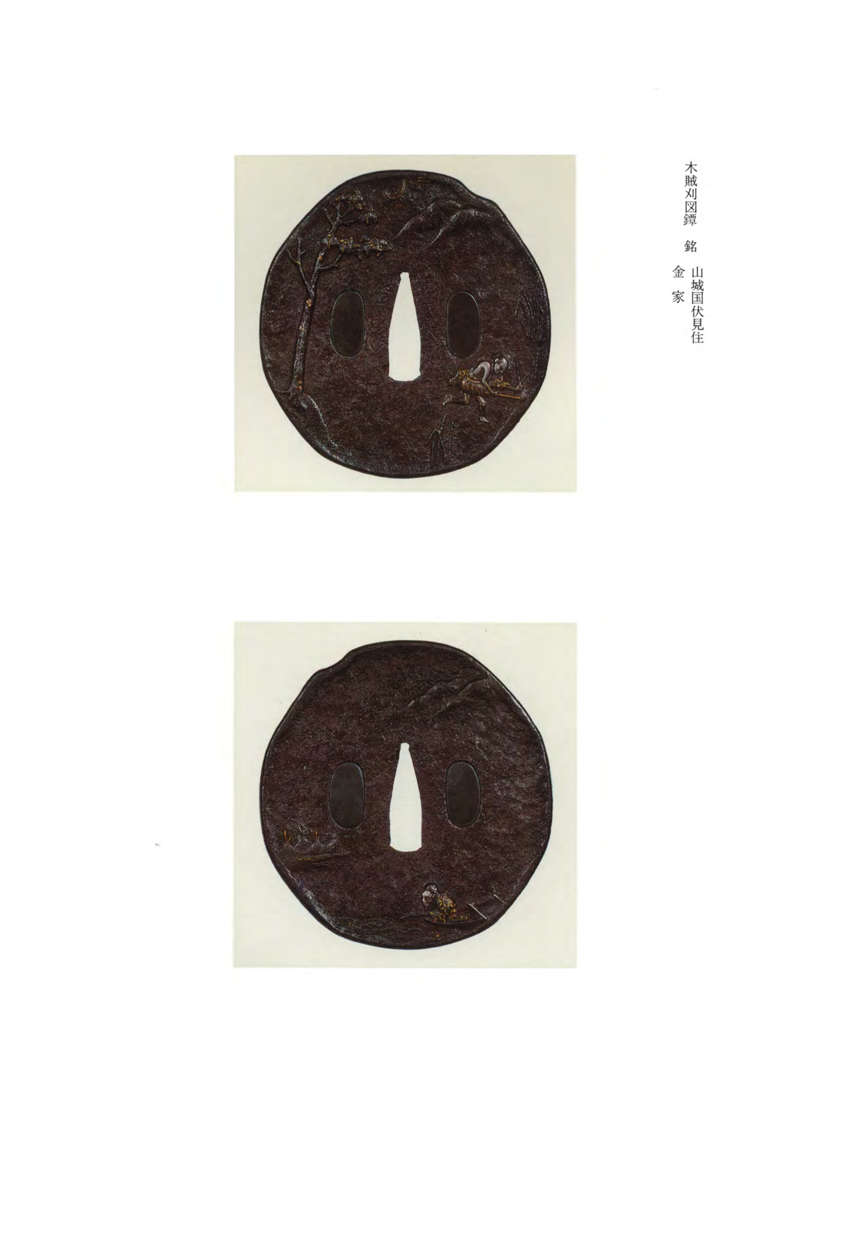 Kaneie is celebrated as the founder of pictorial-style (eshi-) , active in Fushimi, Yamashiro Province during the period. His work represents a decisive break from the purely functional iron guards that preceded him, establishing the as a vehicle for sophisticated pictorial expression. In addition to standard plate forms such as , , and , he devised highly original shapes — among them futatsu- and — designing each work so that subject and plate form would mutually enhance one another. His oeuvre reflects a deep engagement with Zen-inflected literary and religious themes, including Daruma and the parable of the monkey grasping at the moon's reflection.