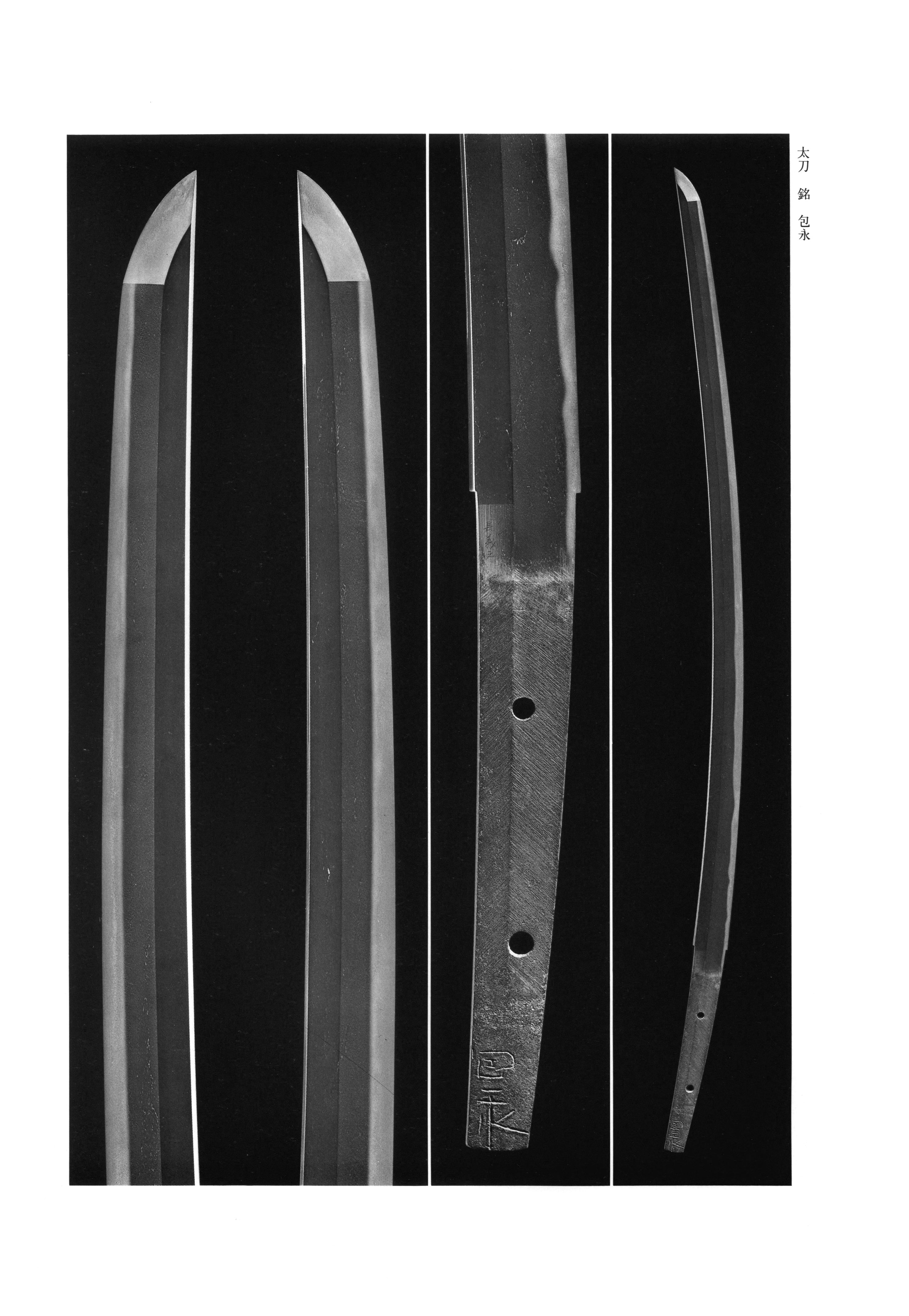 Kanenaga's construction is characteristic of Yamato work, with a high and broad . The is typically mixed with and , forged tightly, with fine adhering thickly and frequent ; in some works stands out, and the steel shows notable clarity. The is grounded in bearing a shallow tendency, into which and may be mixed; along the appear , , , and uchi-noke, accompanied by and . Among signed works of the Yamato Five Schools, Kanenaga's blades display the strongest ; the rounded, beautifully glittering that sparkles throughout both and is a defining feature, and it is this lustrous quality that can rival the finest masters of . The characteristically shows vigorous and tends toward . Two broad categories of are observed: works of comparatively subdued, low-tempered construction with a quiet manner, and more varied, higher-tempered works in which the differs between and , as exemplified by the celebrated "Kotekashiwa Kanenaga."