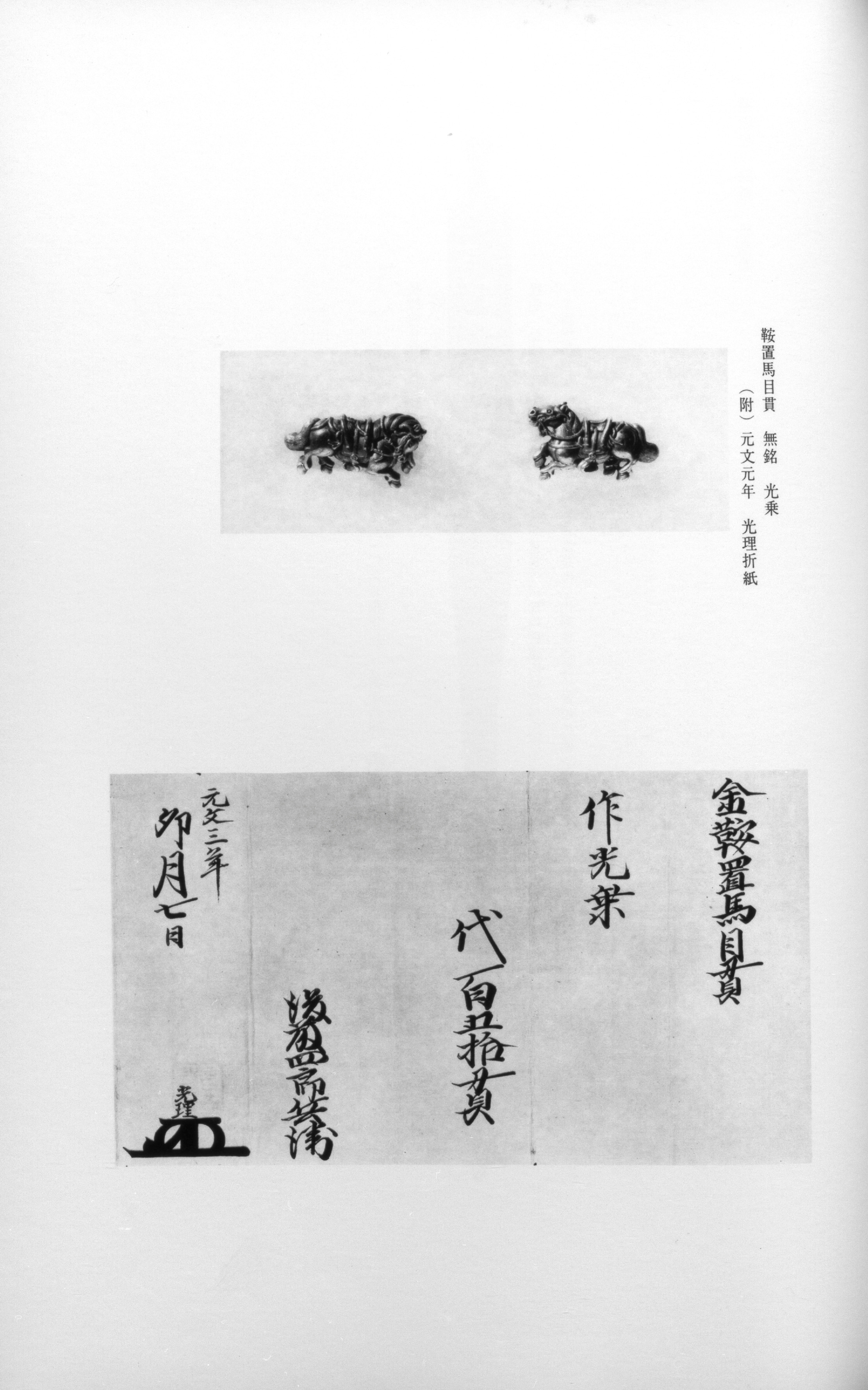 Mitsunori's technical mastery is most evident in his command of yobori (fully modeled sculptural carving) and (high relief) upon and solid gold grounds, often enriched by finely executed and meticulous application of gold and silver . A characteristic feature of his work is the frequent appearance of strongly pictorial compositions, since he employed preparatory drawings (shita-e) by such painters as Kano Motonobu and Kano Eitoku. It is also said that within the Goto house he was the first to produce designs of warrior figures, as well as dragon-and-tiger motifs. His are carved with ample, tactile volume and strongly modulated contours, with in'-ne (contrasting high and low relief root-finishing) on the reverse that is invariably beyond reproach. Whether working in the single tonality of solid gold or in the glossy, vivid black of , he achieved supple, nuanced modeling with pronounced rises and falls in the sculpted flesh -- a feat possible only for a famed master. His personal signatures appear as , including such forms as "Goto Mitsuie ()," "Mitsuie ()," and "Goto ()"; such signed examples are, without exception, works of the highest excellence.