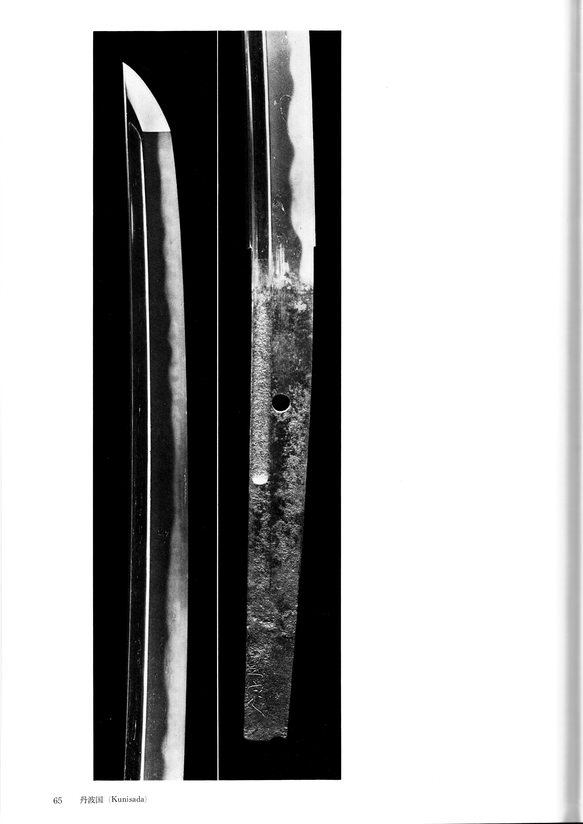 Kunisada (国定) is traditionally identified as a disciple of Kuninobu of the Yamashiro school, and it is transmitted that around the Bun'ei era (1264–1275) he relocated to Tanba Province. His workmanship continues the tradition, and his blades at first glance possess what the describes as "the dignified quality characteristic of Kyo work." A separate line of attribution links the name to the school under the reading Kunisada, recorded in sword catalogs as a student of Kunitoshi, though the relationship between the two lineages remains a subject for further research.
