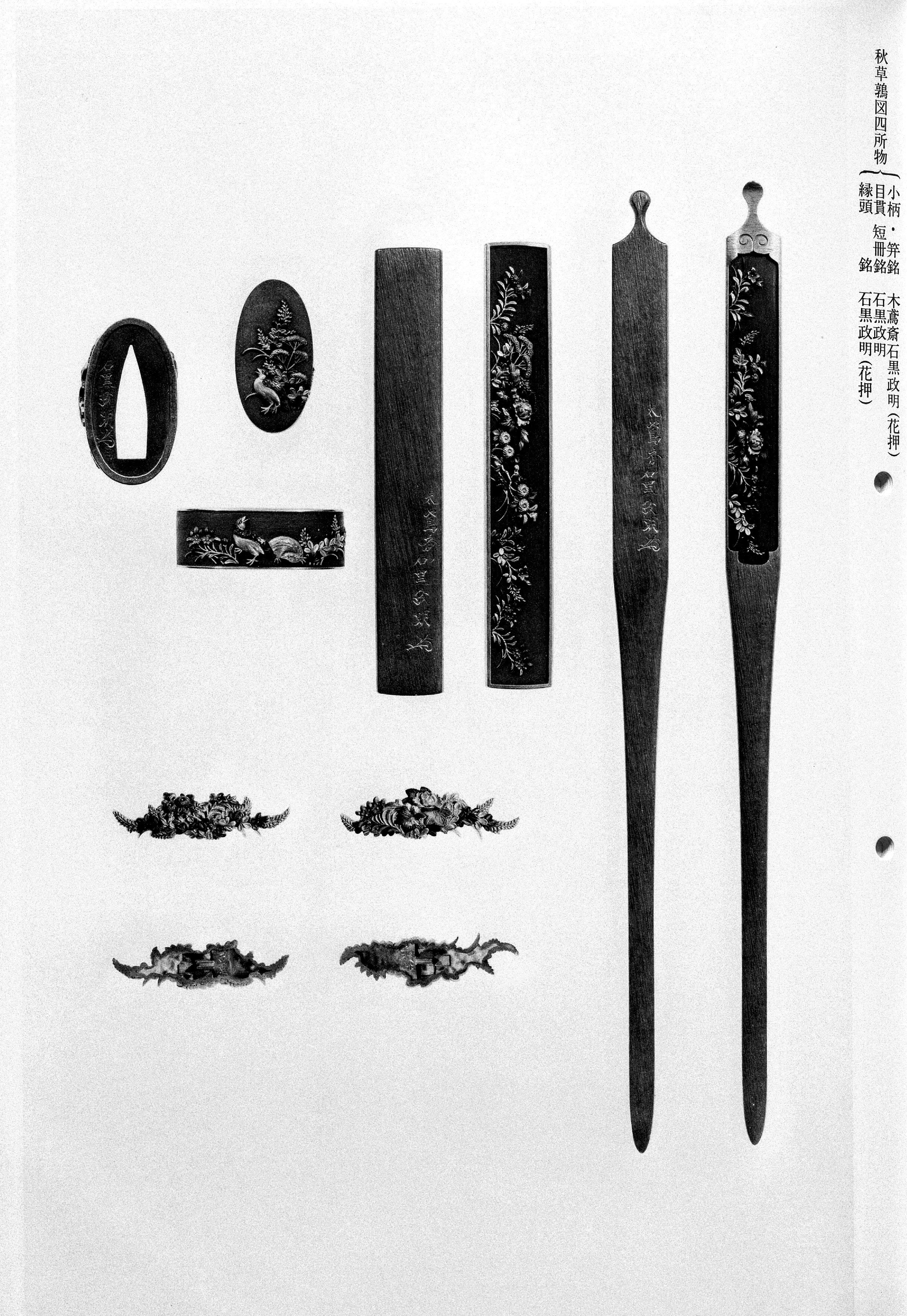 The stylistic character of the Ishiguro school gives direct expression to the tastes of its time, unfolding a lustrous, pictorial world rendered through meticulously executed and richly colored . Masaaki faithfully inherited the techniques of the first-generation Masatsune, and his depictions — thoroughly grounded in close observation from life — are striking. He worked predominantly on grounds finished with , upon which he executed high-relief carving combined with suemon-zōgan and polychrome using gold, silver, , , , and . The method of combining many varieties of colored metals in high relief and inlay is extraordinarily sumptuous, yet never lapses into vulgarity. When an ordinary craftsman attempts such density, the result tends to become overwrought; yet Masaaki displays consummate control, producing work so accomplished that it seems to allow not the slightest margin for fault. His chisel work is minute, his sense of color outstanding, and compositions that leave broad areas of open ground are filled with a lucid, pure vitality.