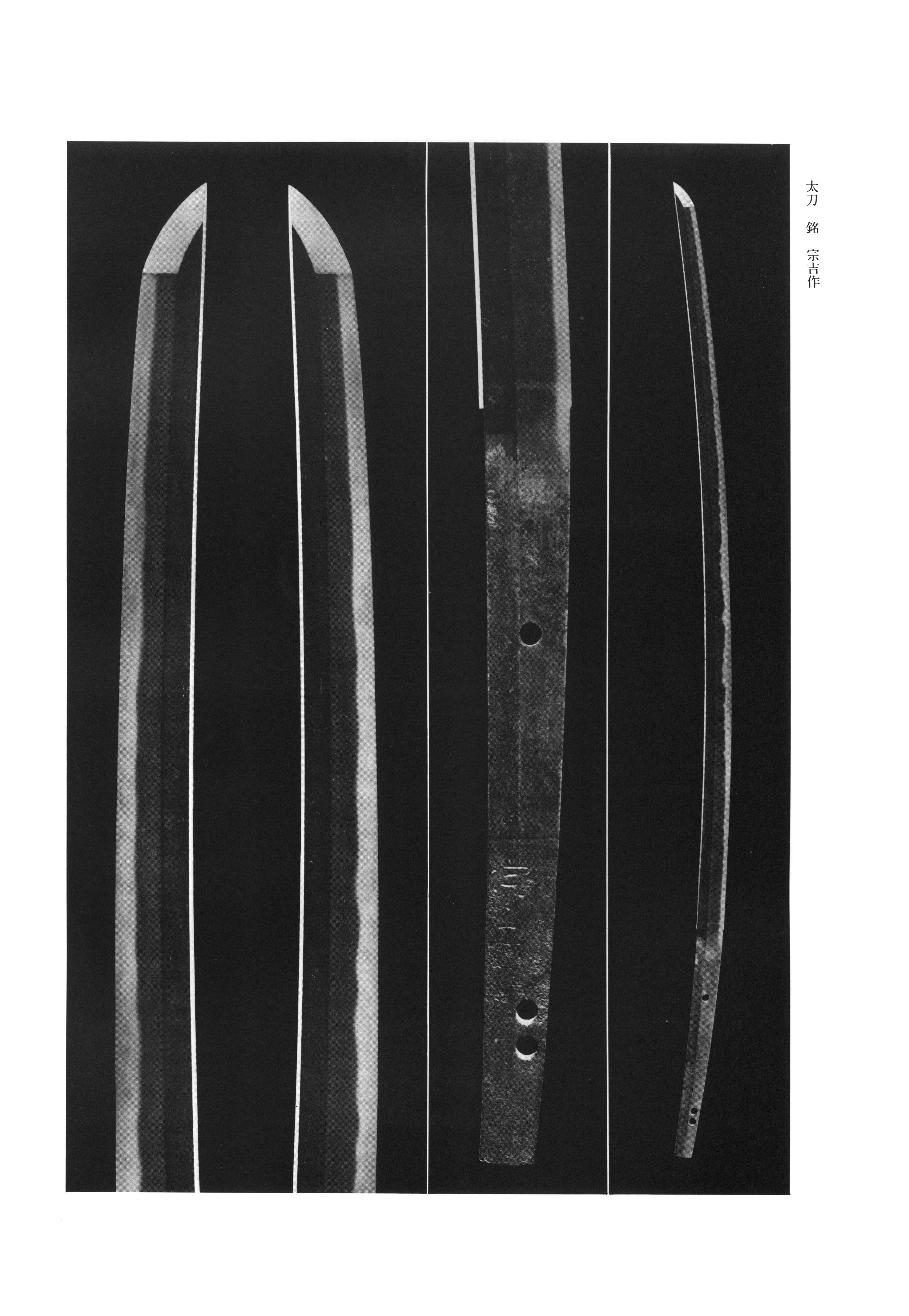 Muneyoshi (宗吉) is identified with the Ko- lineage of Province, active in the early period. According to the Meizukushi Taizen, he was a son of Munekuni and is recorded as having married into the family of Norimune, regarded as the founder of the Fukuoka school. Together with Norimune, Sukemune, and others, he is celebrated as one of the — appointed attendant smiths of Retired Emperor Go-Toba during the Shoji era. The has consistently observed, however, that "among extant signed works, one finds that the manner of signing differs somewhat from example to example, and moreover that there are variations in style," leading to the scholarly inference that "there were multiple smiths using the name." Some works display "an archaic quality in the manner of ," while others incorporate and show "a somewhat more flamboyant character," and it remains difficult to identify which among them corresponds to the historical . A transmitted in the Mori family and an in the Imperial Collection are among the most distinguished works attributed to this name.