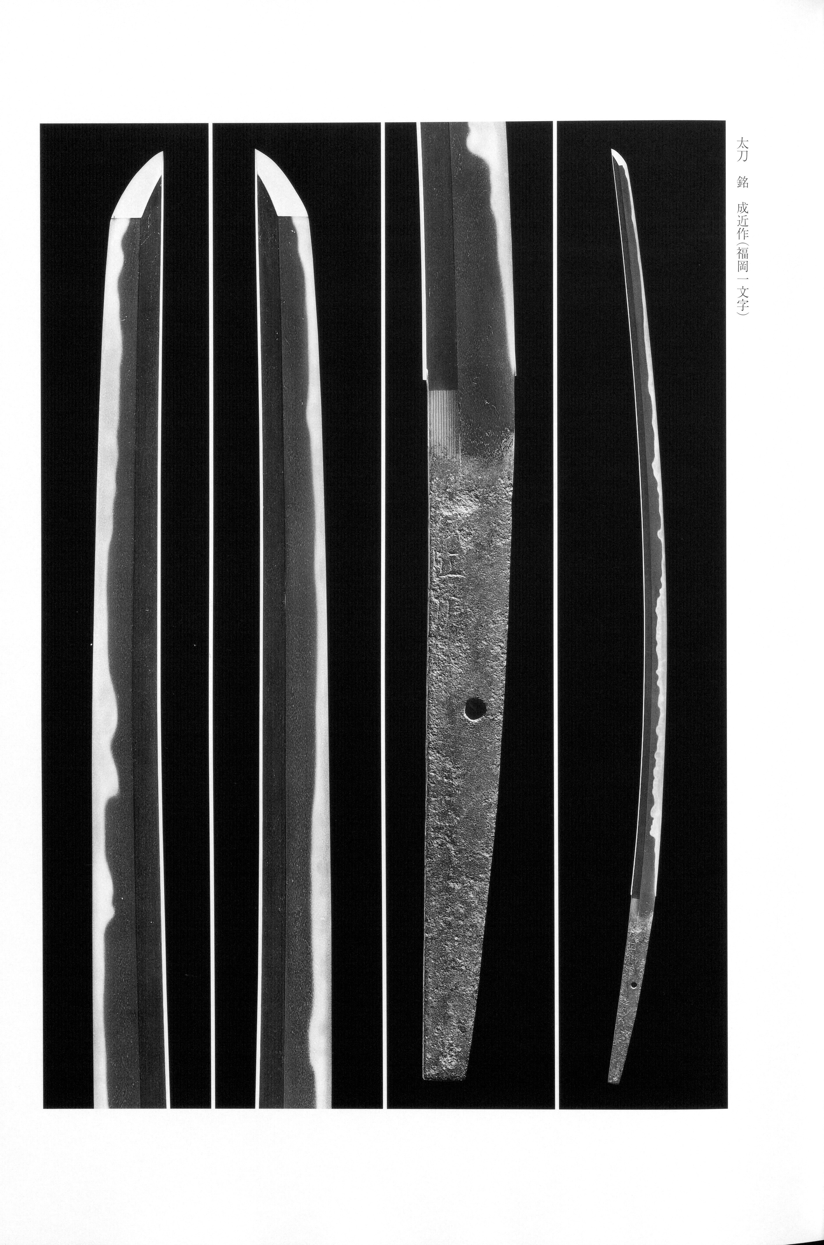 Narichika (成近) was a smith of the Fukuoka group, the celebrated lineage that flourished in Province from the early period through the era. The school prospered in such locales as Fukuoka, Yoshioka, and Iwato, producing many excellent craftsmen. According to sword-signature compendia, Narichika's period of activity is recorded as around the Jōei era (c. 1232--1233). Extant signed works by him are rare, making each surviving example of particular importance for the documentary record. A separate smith reading Narichika is also known among the Ko-Hōki group descending from Yasutsuna, active from the late into the early period in Hōki Province; the two should not be confused.