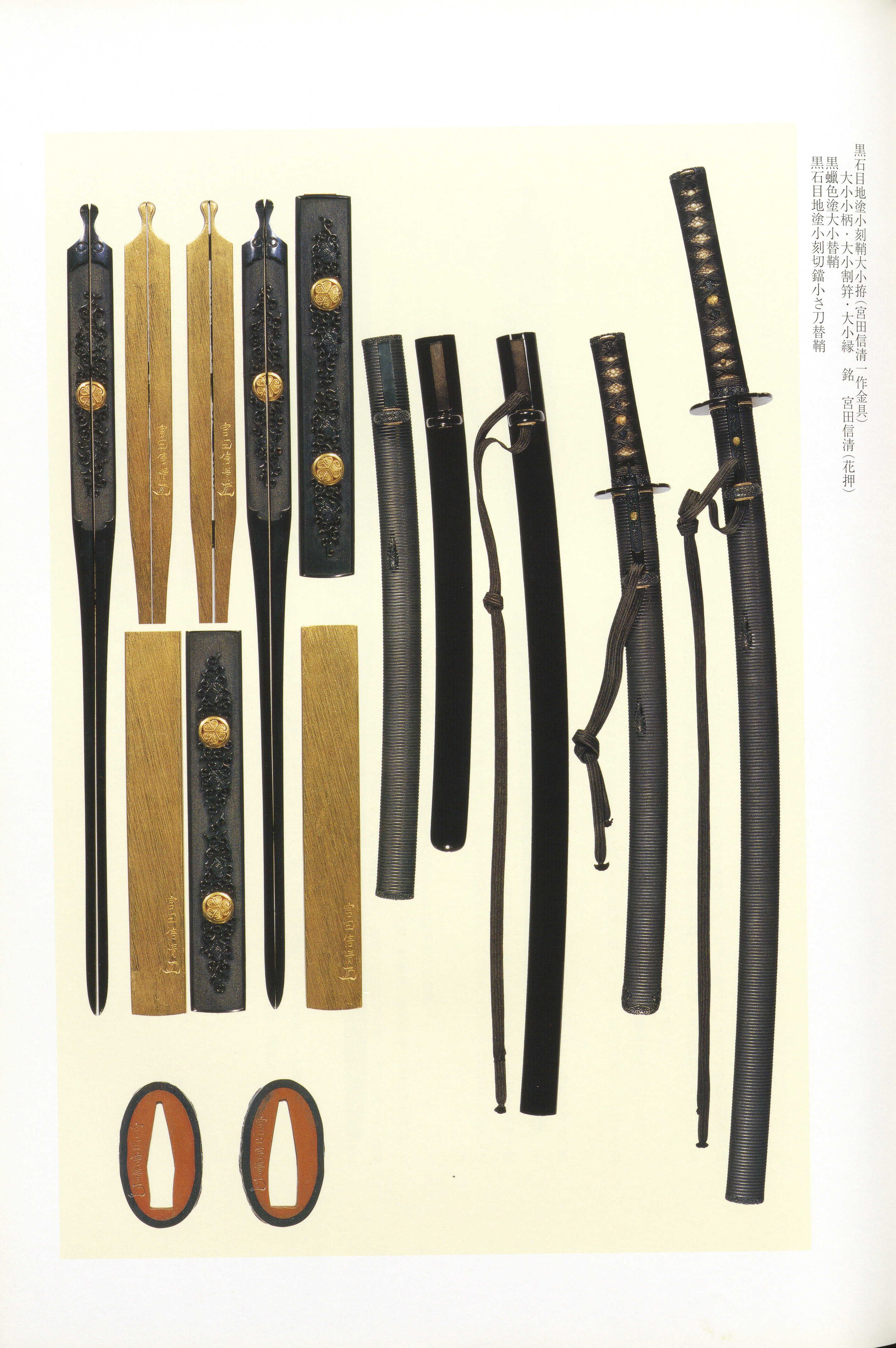 Nobukiyo occupies a distinctive position among late- metalworkers as a practitioner who absorbed roughly a decade of disciplined Gotō-school training and channeled it into complete ensembles of elevated, formal character. His surviving works are comparatively few, making preserved matched sets especially valuable for understanding the full scope of his style. The consistently careful workmanship, dignified compositional planning, and chromatic restraint across his oeuvre exemplify the highest standards of Gotō-lineage metalwork in the closing decades of the period.