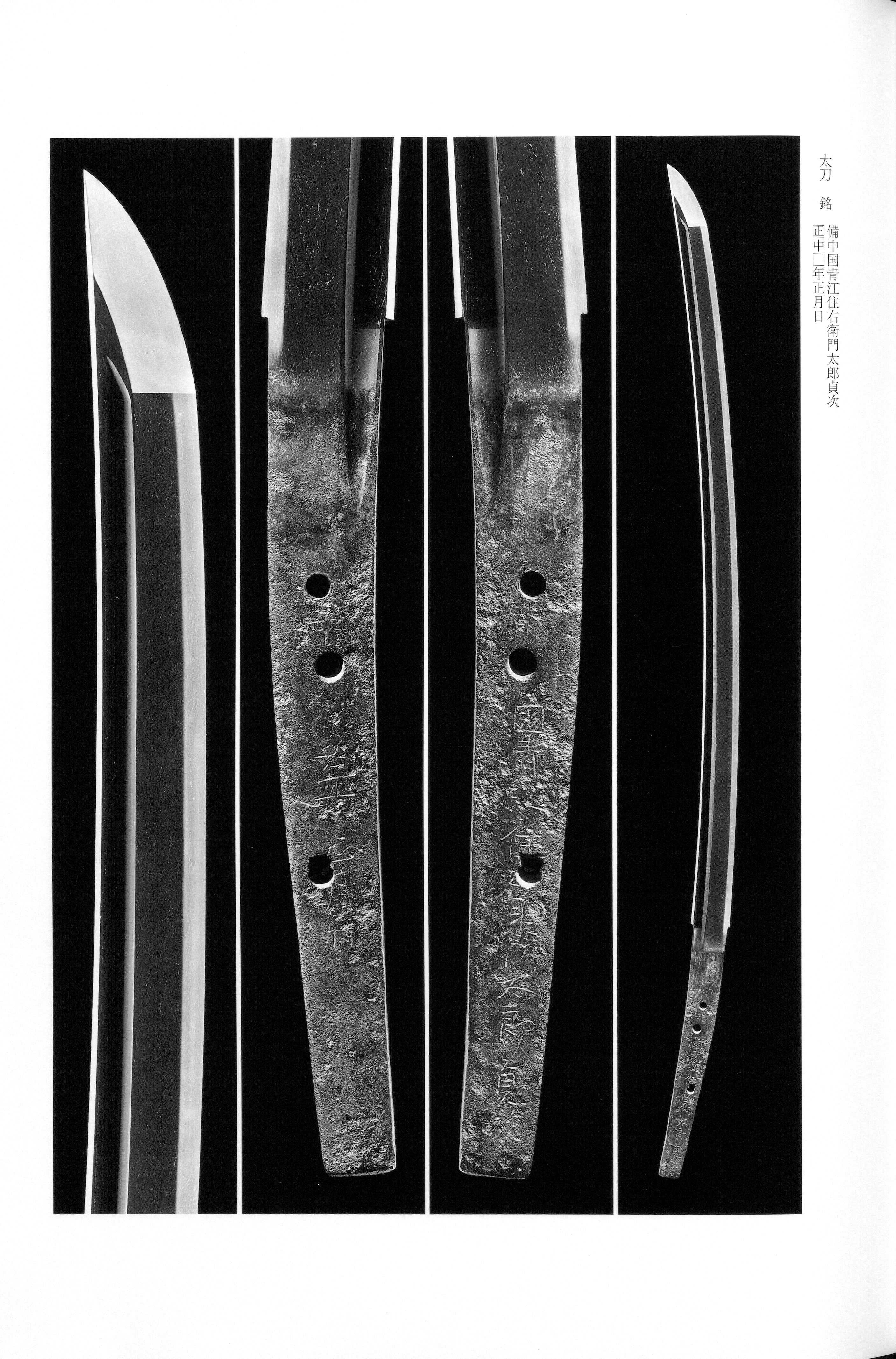 Sadatsugu (貞次) of the school is one of the most historically revered names in the Japanese sword tradition. Sadatsugu has been transmitted since the Kanchiin-bon Meizukushi as a master selected among the smiths appointed to forge in attendance upon Retired Emperor Gotoba. In the Shinkan Hiden-sho he is accorded the highest valuation -- " workmanship, supreme: fifteen " -- and thus has long been regarded as a foremost figure even among works. The name Sadatsugu was carried on through successive generations into the period; the later Uemon Taro Sadatsugu, recorded as the son of Suketsugu, left dated works from the Karyaku, Gentoku, and Genko eras, though surviving examples by this smith are exceedingly rare.