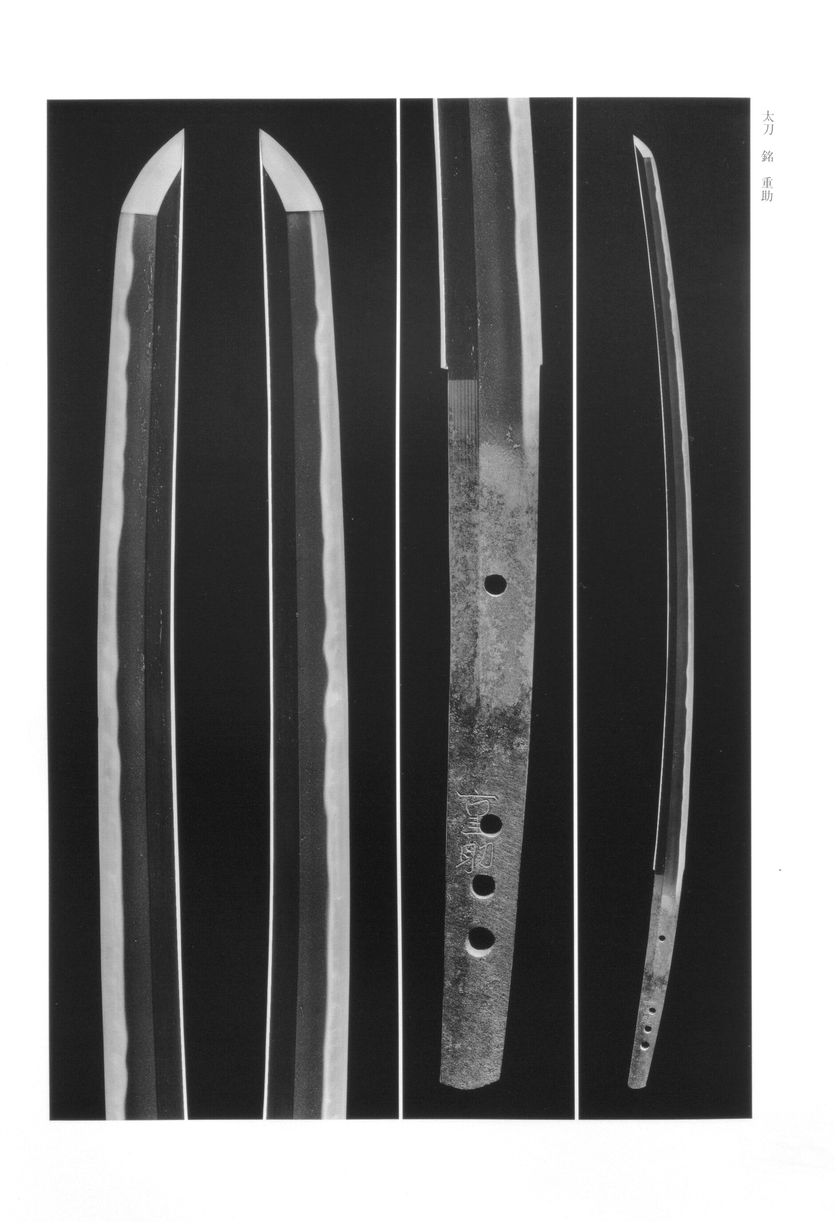 Shigesuke was a swordsmith residing at Wake-no-sho in Province during the late period. He worked alongside Shigenori, the other known smith of the Wake group; extant signed works by both are exceedingly rare. For Shigenori, dated examples survive from Shochu 3 (1326) and Genko 4 (1324), while Shigesuke is represented by works dated Karyaku 3 (1328), from which the era of their activity can be ascertained. The Wake district is cited as one of the presumed locales associated with the old smiths, and one view holds that these makers were swordsmiths who drew upon the lineage, though the details are not clearly known. Shigesuke's precise genealogy remains similarly obscure. His output, as far as can be judged from surviving examples, tended toward blades of relatively compact proportion; yet the quality of workmanship is such that it is described as fully comparable to -- "in no way inferior to and possibly exceeding" -- the customary works of the contemporaneous smith Kagemitsu.