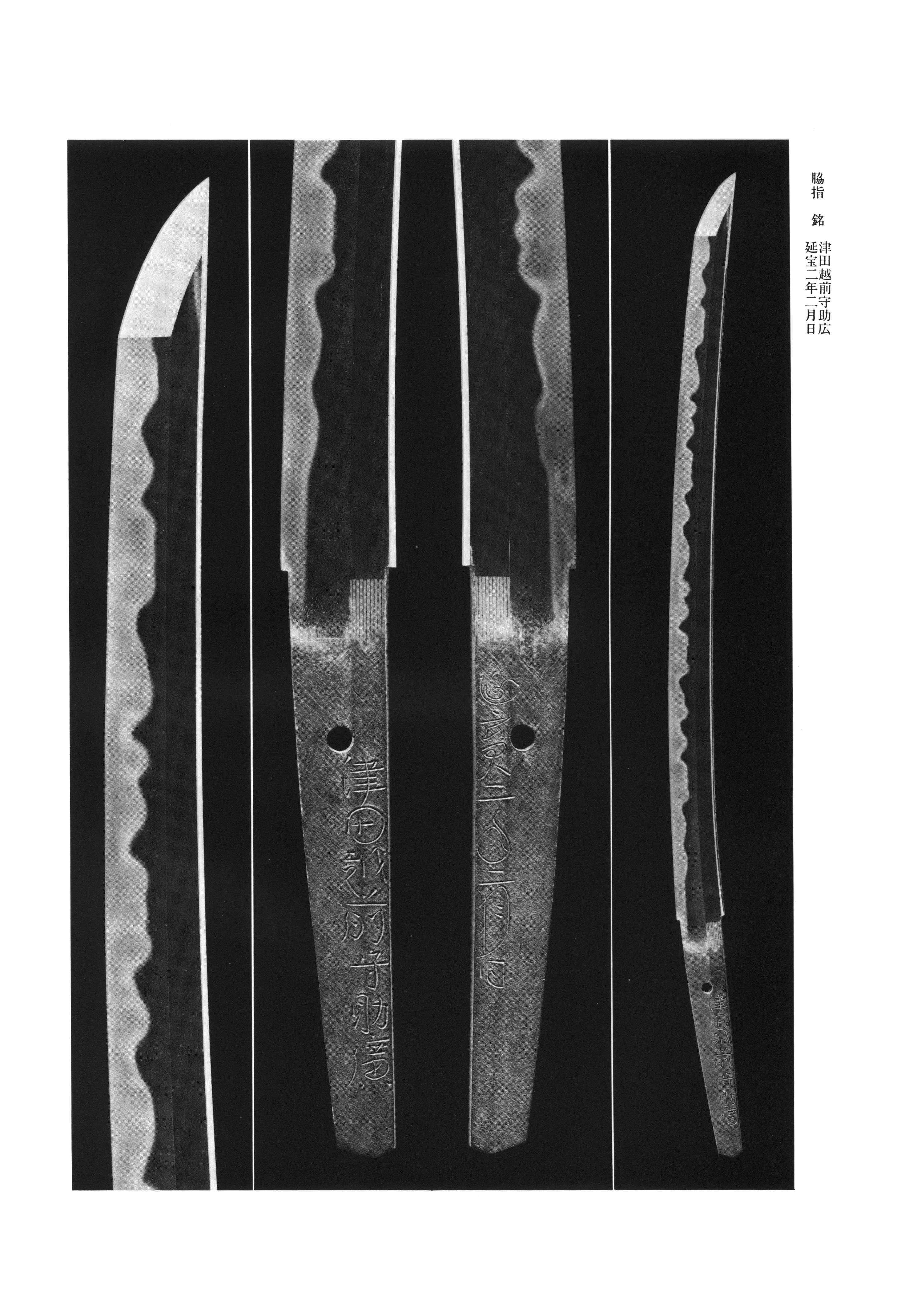 Tsuda no Kami Sukehiro, the second generation, was born in 'ei 14 (1637) in Uchide village, Settsu Province (present-day Ashiya City). His common name was Jinnojo. He studied under the first-generation "Soboro" Sukehiro, a smith of Ishido lineage who had trained under the first-generation Kawachi no Kami Kunisuke, and after his master's death in Meireki 1 (1655) he succeeded as the second generation. Around Meireki 3 (1657) he received the court title of no Kami, and in 7 (1667) he entered the service of Aoyama Inaba no Kami Munetoshi, the Osaka Castle governor. He died in Tenna 2 (1682) at the age of only forty-six. In his early period he tempered in the manner of Ishido; he then shifted to ; and ultimately he originated the distinctive temper known as toran-, which "took the age by storm" and exerted a powerful influence not only on contemporary Osaka smiths but also on many makers of the later era. His is also "extremely skillful," and the regards it as standing alongside the of Inoue Shinkai of Osaka "as twin peaks."