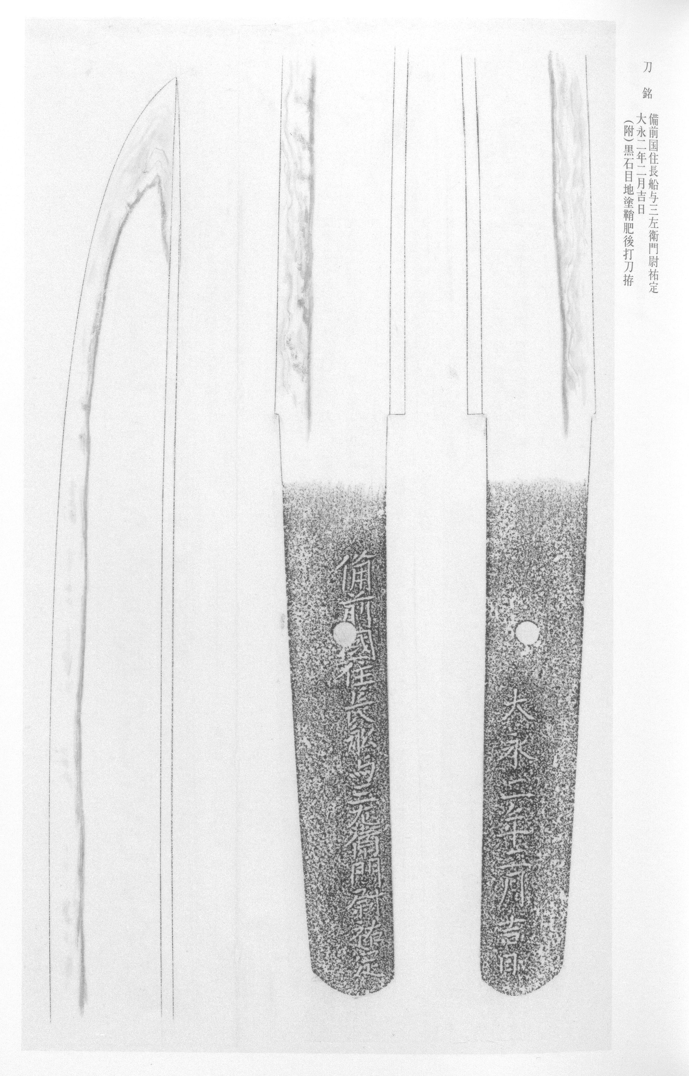 Sukesada represents the most prosperous smithing lineage among the swordsmiths of the late period, collectively termed . According to the Hayami , as many as twenty-one smiths are recorded as having appended a zokumyo (common name) to their signatures while working under the Sukesada name. Within this large group, those who particularly distinguished themselves in technical ability are the smiths bearing the titles Yosazaemon no Jo, Hikobei no Jo, and Genbei no Jo. Yosazaemon no Jo Sukesada stands foremost among them, being especially rich in the number of superior works. Two generations bear the signature; from an extant signed "Tenbun 6, made at the age of seventy-one," one can calculate retrospectively that the first generation was born in Onin 1 (1467). Hikobei no Jo Sukesada is traditionally said to have been the father of Yosazaemon no Jo. Genbei no Jo Sukesada enjoys a strong reputation for the excellence of his forging and is further characterized by particular strength in -toned temper patterns. A later generation, Shichibee Sukesada, is recorded as the fifth generation descended from Yosazaemon no Jo of the Eisho era, faithfully continuing the style of his forebears. The Sukesada line also produced notable joint works (), as in the celebrated made collaboratively with Jirozaemon no Jo Katsumitsu for the warlord Ukita Yoshie.