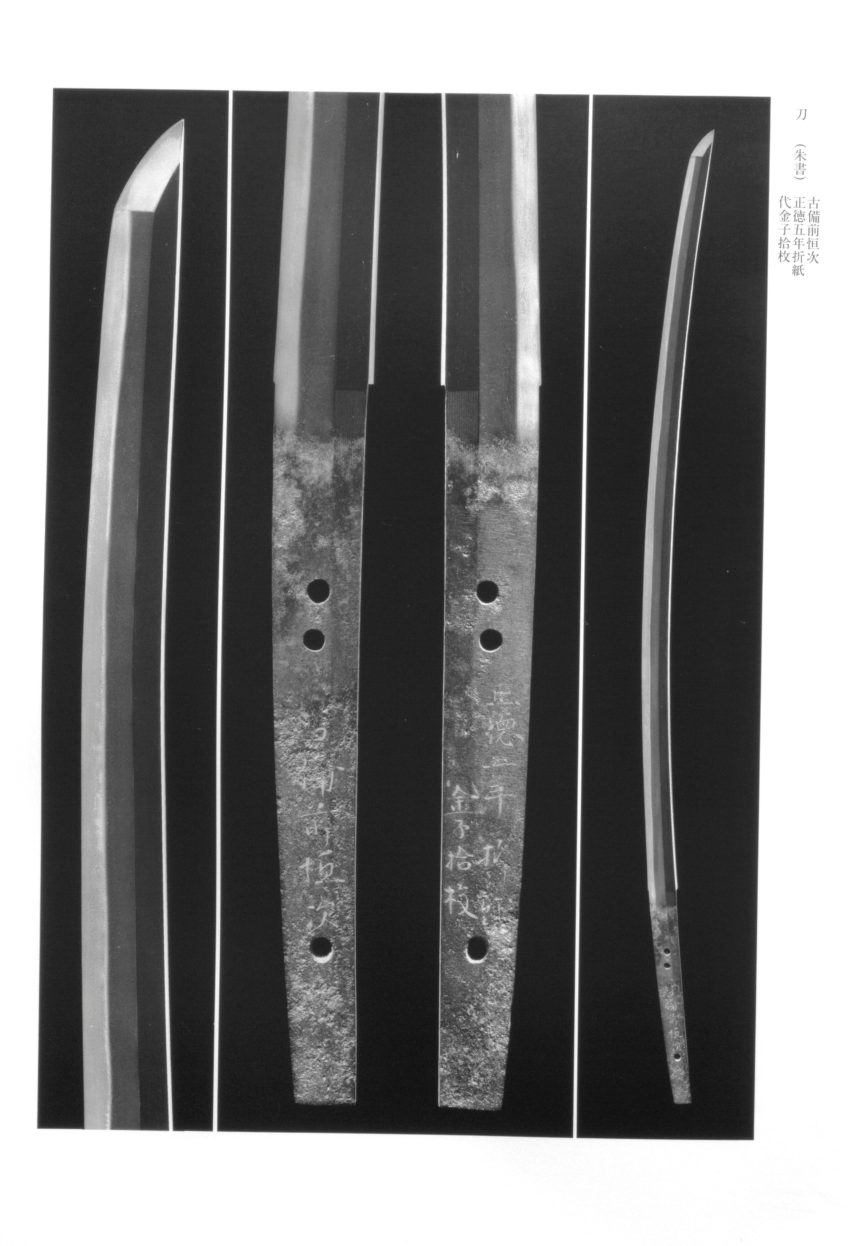 The consistently praises the superlative condition of his surviving works, describing them as — "sound and well-preserved" — and singles out the "superbly clear" () quality of the as "remarkable." That his blades retain their integrity across centuries of shortening and transmission speaks to an exceptional standard of craft. Historical provenance further attests to this esteem: one example carries a Kochu of Shotoku 5 (1715) with a valuation of ten gold pieces, and the attribution on surviving works has been accepted as reliable by the , affirming Tsunetsugu's place as a distinguished smith within the founding generation of the tradition.