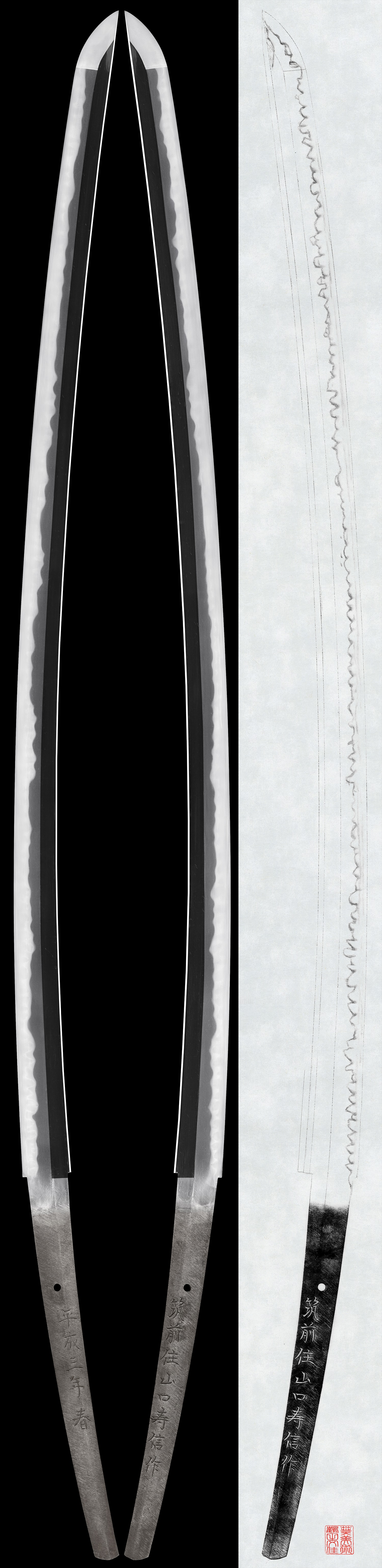 Katana:Amata Akitsugu Saku Kore (Living National Treasure) A fortunate day in January, 1977 Made on request by Mr. Takeshi Muraki (NBTHK Tokubetsu Hozon Token)