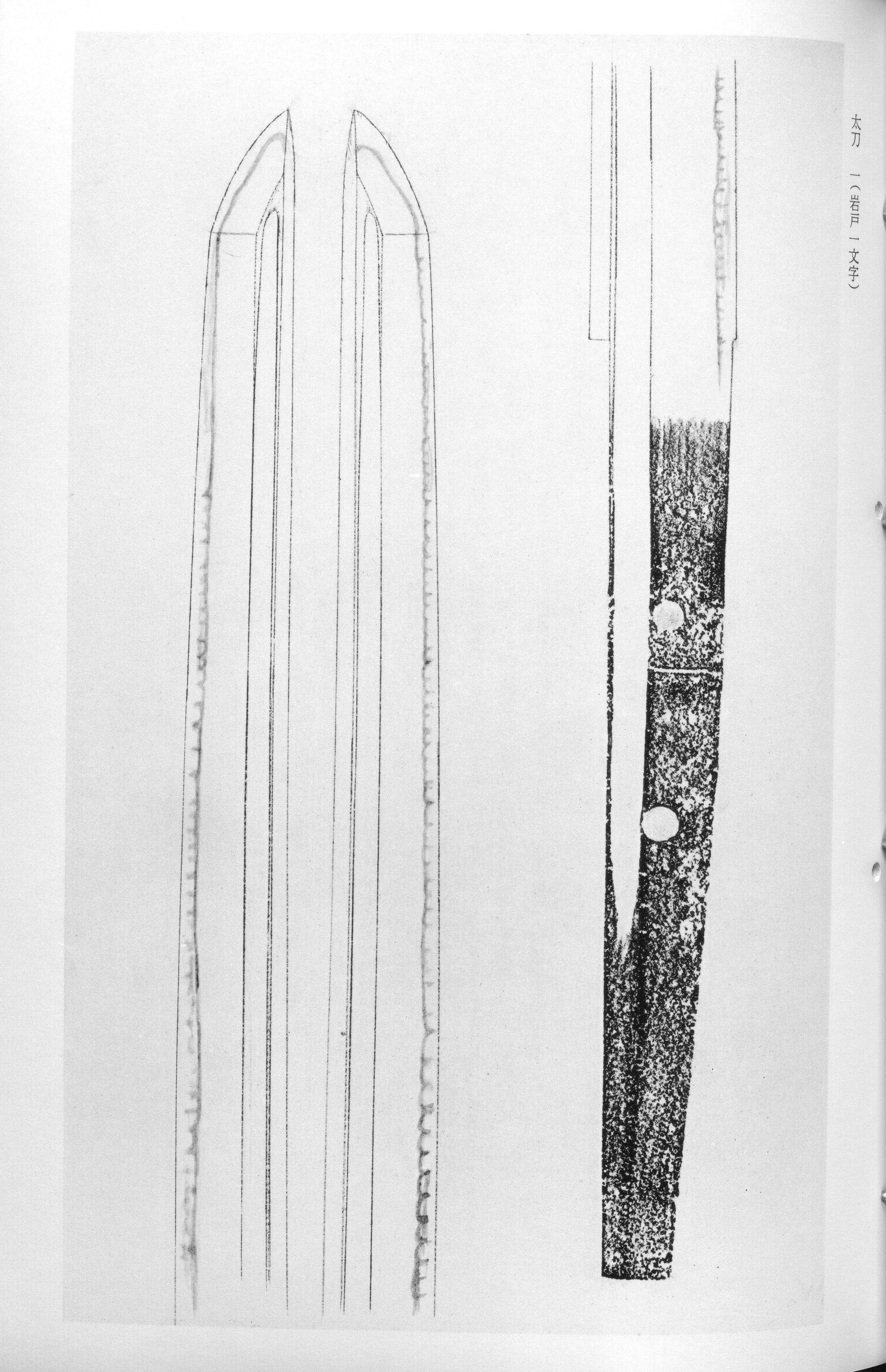 The Iwato school represents a small but distinctive branch of the broader lineage that flourished in Iwato-shō, Province, from the late period into the era. According to sword reference works, the school's founder is traditionally identified as Yoshimitsu or Yoshiuji, though extant signed works are primarily represented by Yoshiie, whose blades bear elaborate inscriptions such as " Bishū Iwato-shō jitō Sahyōe-no-jō Minamoto Yoshiie" with dates from the Gentoku era. Like other branches in Fukuoka and Yoshioka, these smiths employed the signature convention of cutting the character (一, "one") into the , either alone, combined with individual names, or omitted entirely in favor of personal signatures.