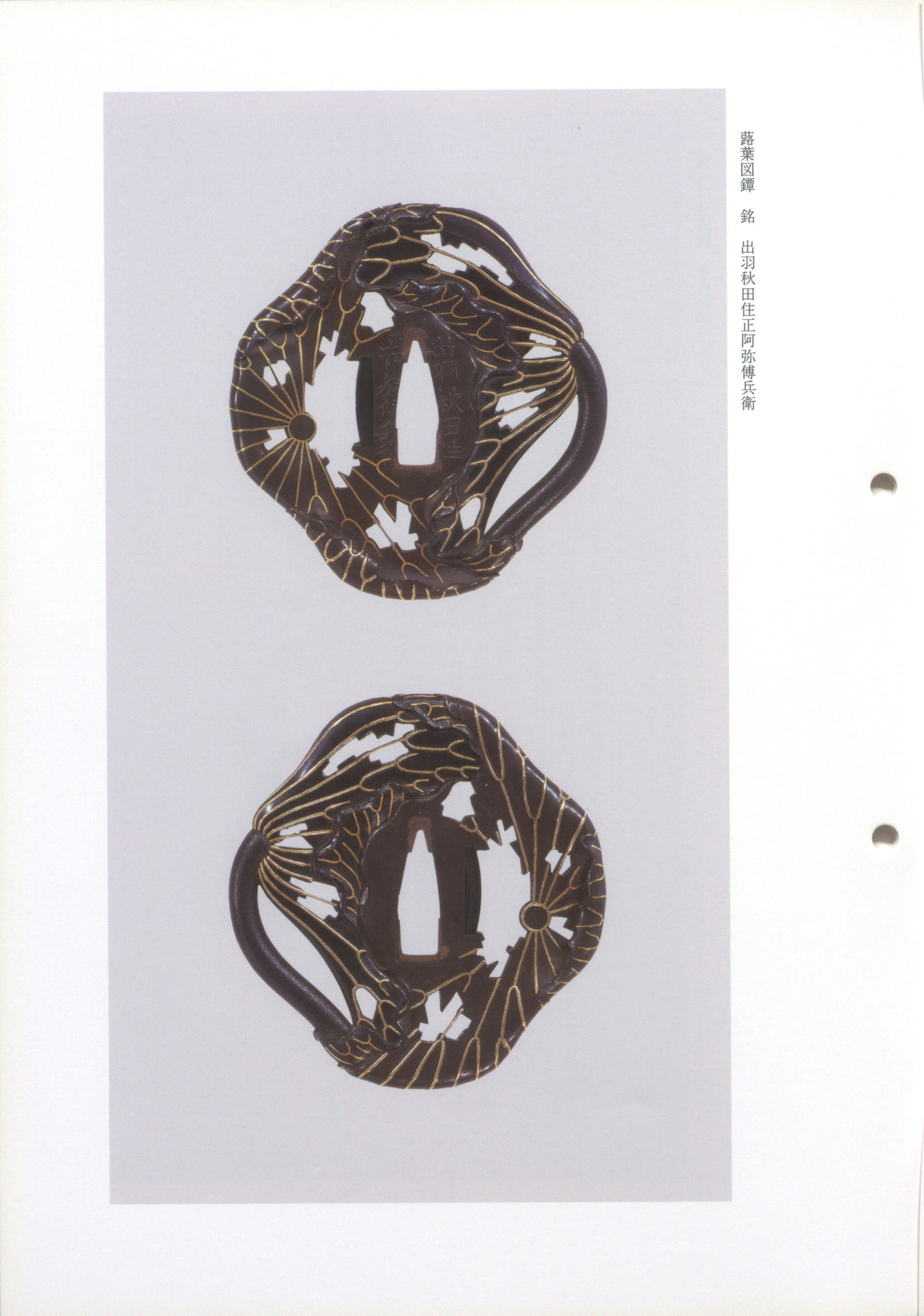 Denbei's consistently project an assertive, powerfully individual artistic character regardless of subject or format. Whether working in otafuku forms with bold butterbur leaves, true-round iron plates with - and all-over gold , or hexagonal guards with bamboo openwork, his works convey both mastery and authority. His approach to spatial organization is distinctive: he combines realistic depiction with devised, original compositional ideas, and places importance on effects of coloration. Even with an intentionally simple motif, he projects a forceful, individual world and conveys the capacity of a master craftsman. Denbei's work reveals a sophisticated hand grounded in traditions inherited from the Shoami forebears, elevated by originality and technical virtuosity into a manner that is uniquely his own.