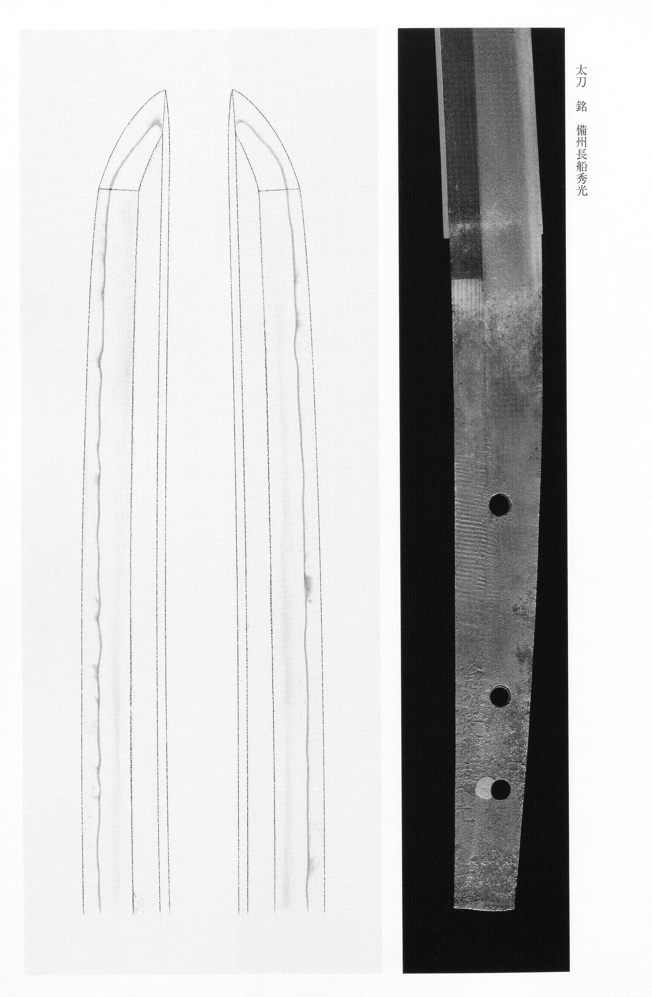 Hidemitsu is recorded in the as beginning with a first generation active in the Kenmu era, followed by smiths of the name across four generations spanning the , Shitoku, and Oei eras, with further generations continuing into the period. However, strict generational differentiation remains a matter that must await further research. He belonged to the lineage and circle of Kanemitsu, and is counted among the group of smiths known as the - — a designation used chiefly for those -period smiths within the Kanemitsu tradition who produced blades with comparatively shallow curvature.