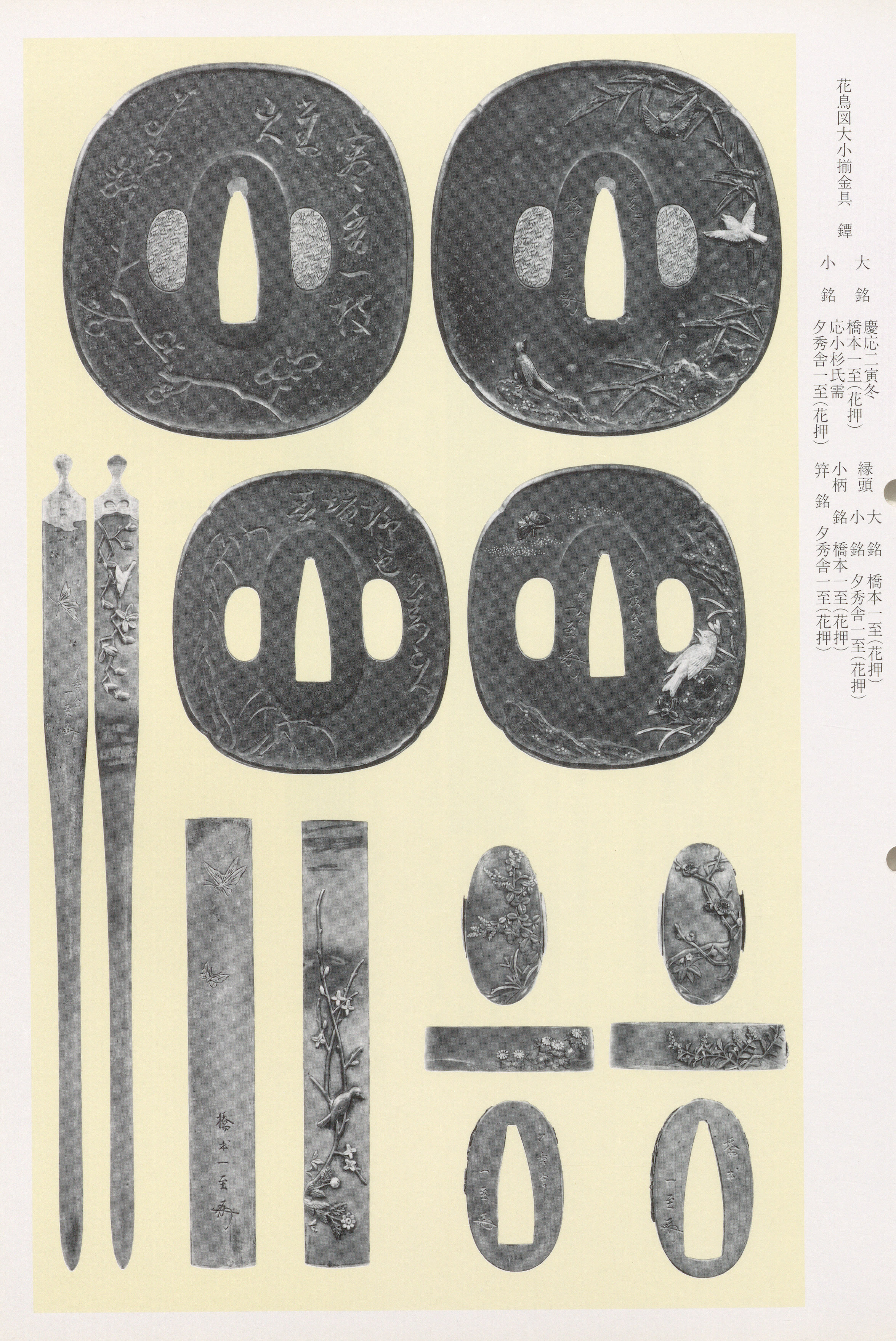 Isshi's designated works encompass unified fittings sets, complete mountings in solid gold, and collaborative pieces produced under Ichijo's direct supervision, attesting to his central position within the workshop. Across the designations, the repeatedly emphasizes his ability to compose coherent thematic ensembles -- seasonal kacho programs, auspicious-cloud suites, dragon-and-wave cycles -- in which the carving is "steady and assured" and the overall impression "forceful in character" yet possessed of "a notably elevated sense of formality and taste." His commissioned sets are characterized as full-force works representing "Isshi's utmost effort," and his oeuvre remains essential to understanding the productive output and artistic standards of the late Goto Ichijo school.