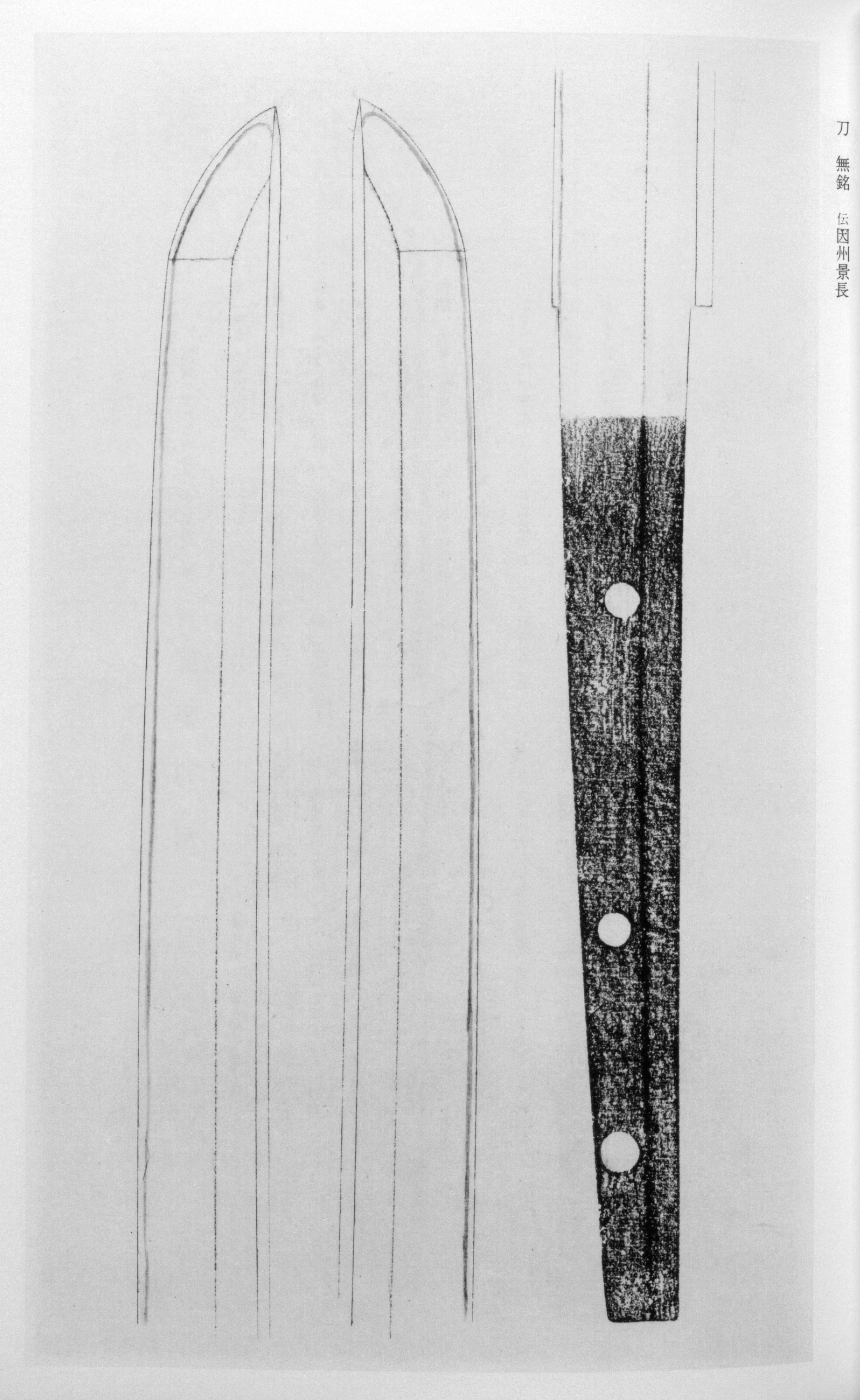 Kagenaga (景長) of Inshu (Inaba Province) is traditionally said to have been a disciple of Yoshimasa of Yamashiro Province, with some accounts identifying him as Yoshimasa's younger brother. He is commonly known by the appellation "Inaba Kokaji" -- the small smith of Inaba. Beginning with the first generation, smiths signing with the name continued from around the end of the period well into the period. However, works that bear dates are extremely few, being limited to only several blades inscribed with an Oei-era date, making it exceedingly difficult to determine the period of a given work solely from the manner of the signature. Extant blades actually signed "Inshu-ju Kagenaga" are rare, further underscoring the documentary value of each surviving signed example.