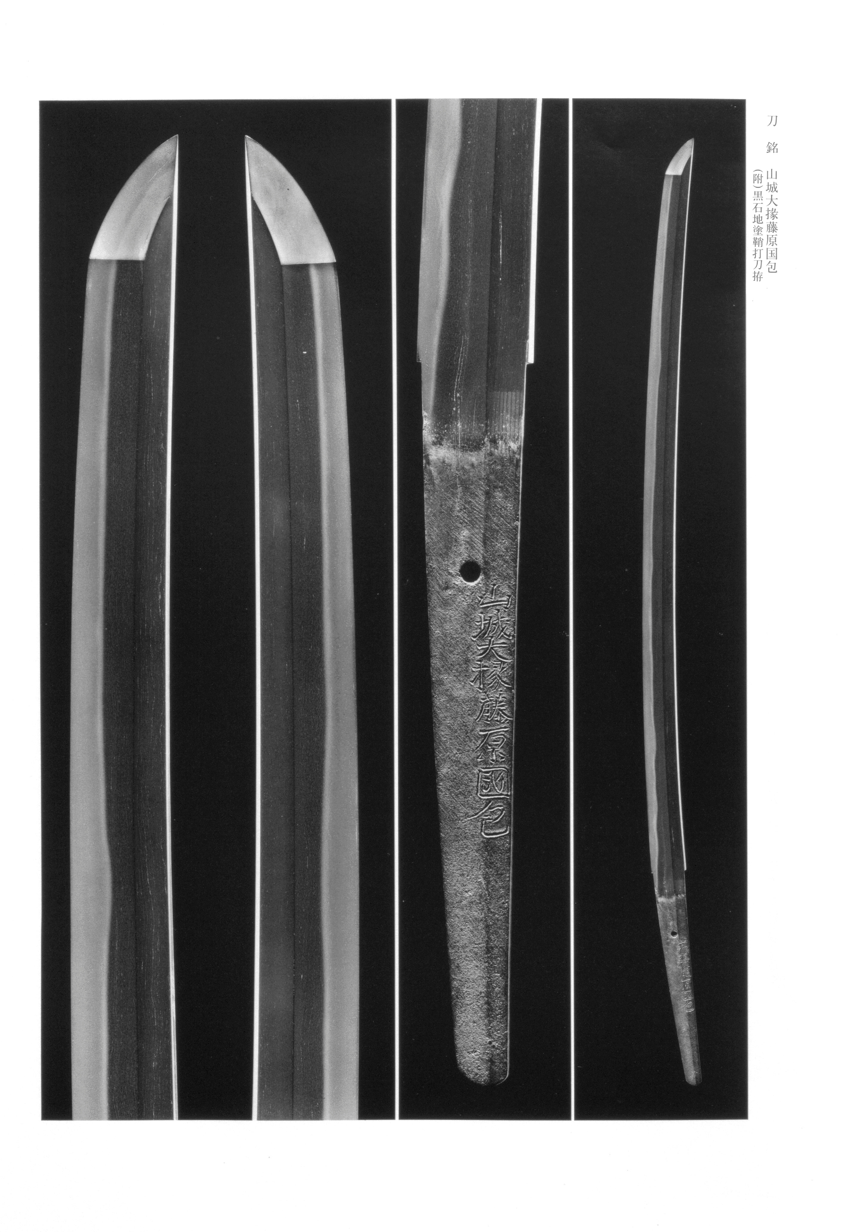 Kunikane, first generation, was of the Hongo family and bore the personal name Genzo, later Yoshinosuke. He claimed descent from the later line of Yamato Hosho Goro and was born in Bunroku 1 (1592) at Kokubun Wakabayashi in Miyagi District, Oshu -- present-day Sendai. He entered the service of Date Masamune as a retained swordsmith (kakae-kaji), and in Keicho 19 (1614), by his lord's command, he traveled to Kyoto and studied under no Kami Masatoshi. In 'ei 3 (1626) he received the court title Yamashiro Daijo. When Masamune died in 'ei 13 (1636), Kunikane likewise took the tonsure, adopting the name Ninzawa Yoe. In Shoho 2 (1645), at the age of fifty-four, he retired and transferred the family headship to the second generation, his eldest son Kichiemon, who would later receive the title Yamashiro no Kami; nevertheless, the first generation continued forging thereafter and died in 4 (1664) at the age of seventy-three. His descendants continued to flourish under the name Kunikane down to the end of the period.