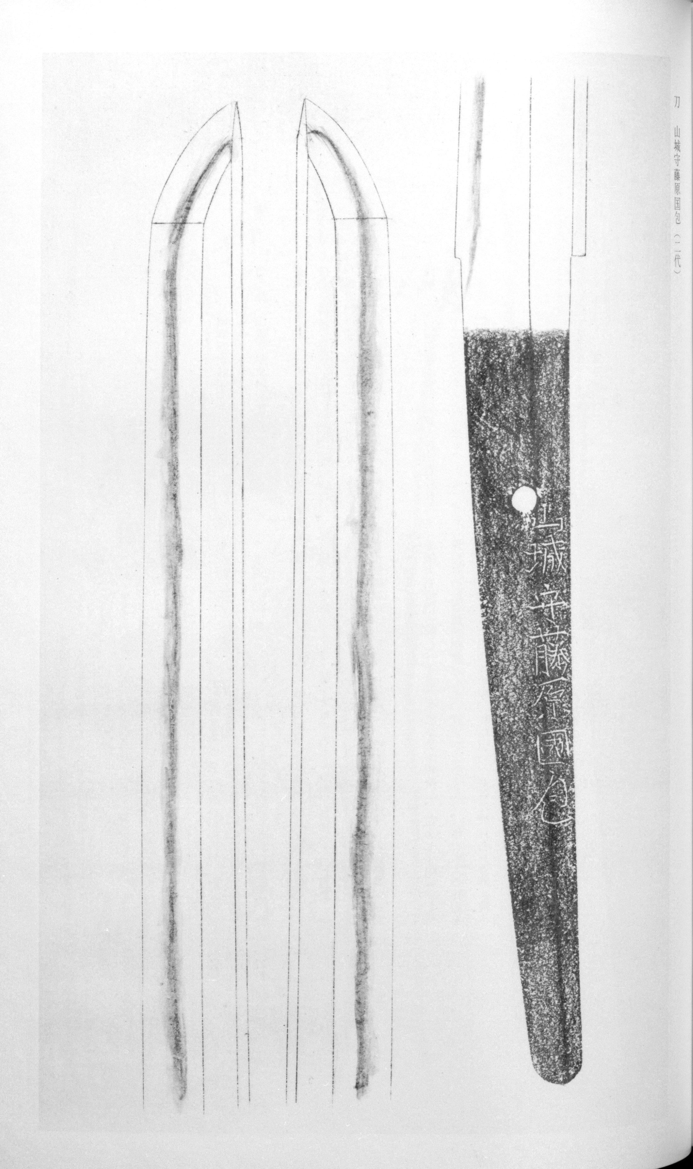 Kunikane of Sendai was the founding smith of a lineage retained by the Date clan of Oshu. The first generation, born in Bunroku 1 (1592) at Kokubun Wakabayashi in Miyagi District, was known by the name Hongo Genzo and later Yoshinosuke. He styled himself a later offshoot of the Yamato Hosho Goro lineage and, by his lord Date Masamune's command, traveled to Kyoto in Keicho 19 (1614) to study under no Kami Masatoshi. He received the title Yamashiro Daijo in 'ei 3 (1626), and upon Masamune's death in 'ei 13 (1636) took the tonsure as Nisawa Yoe, yet continued forging until his death in 4 (1664) at the age of seventy-three. His eldest son, Hongo Kichiemon, succeeded as the second generation in Shoho 2 (1645) and received the title Yamashiro no Kami in 7 (1667); he died in 12 (1672) at the age of sixty-one. The consistently describes the second generation as a smith "of high skill, following his father," whose works at their best "approach the first generation in quality" and are "scarcely inferior to that of the first generation."