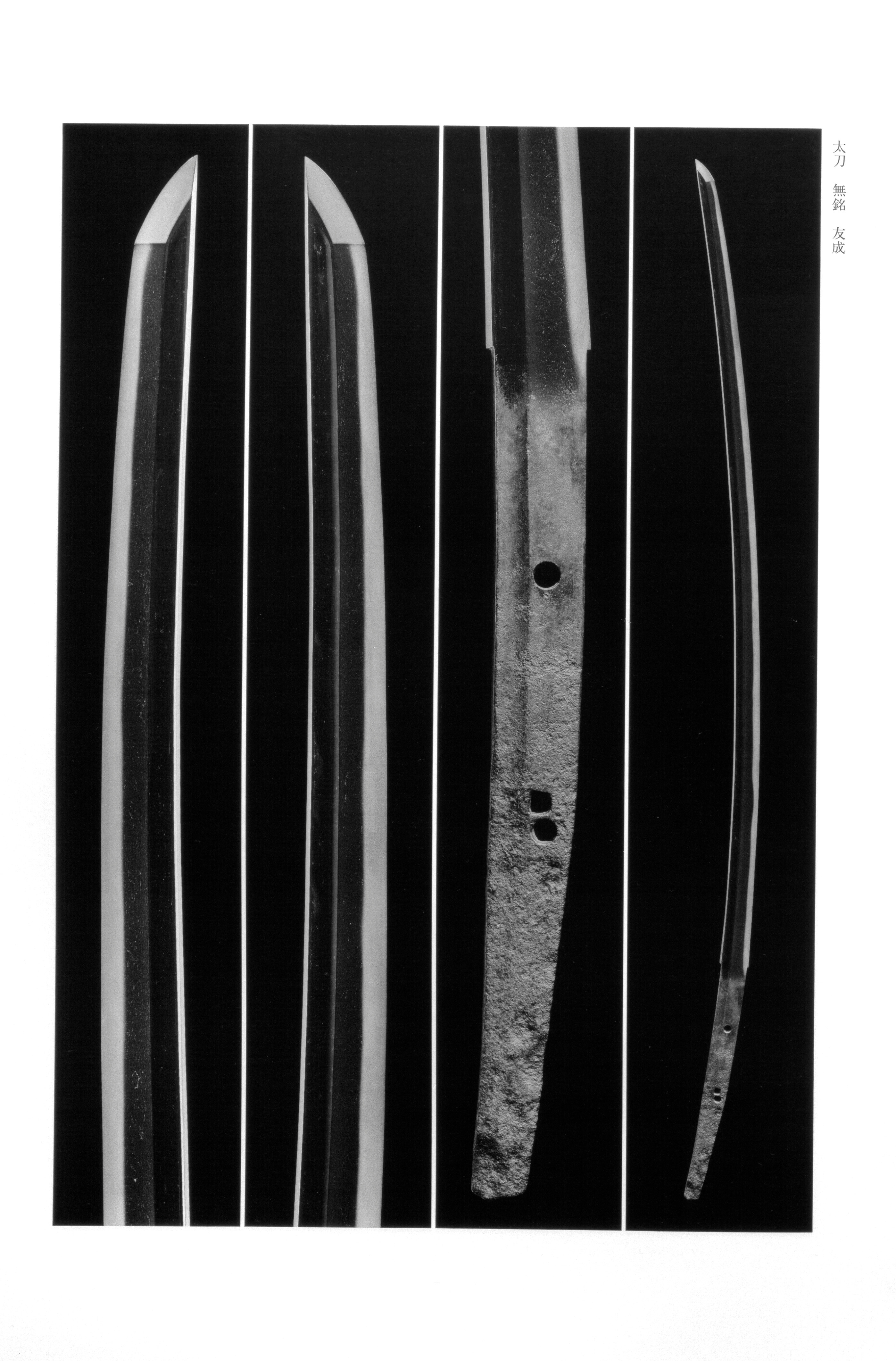 Tomonari (友成) stands as one of the two great pillars of the school, paired with Masatsune as the "twin peaks" of Province swordsmithing in the period. Sword reference works place the first generation around the Eien era (987–989), and it is understood that the name did not belong to a single generation alone: works bearing the Tomonari signature span from the late period through the early period, with a later smith known as the "Katei Tomonari" active around 1235–1238. At least three generations are thought to have used the name, a conclusion drawn from the variety of signature styles — " no Tomonari," " no Tomonari ," "Tomonari ," and the two-character "Tomonari" — as well as from observable differences in and workmanship across the corpus. It is the first generation, however, whose technical skill and dignity of workmanship are considered outstanding and to whom the smith's enduring renown properly pertains.